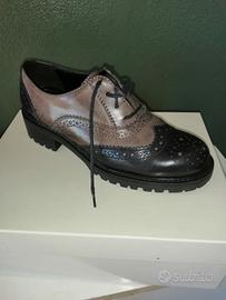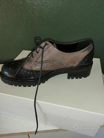 Mocassini con lacci di colore nero e asfalto, num. 36. Manifattura artigianale delle Marche, Indossate una sola volta, come si vede dalle suole. Marca Donatella.