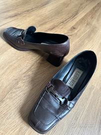 Mocassini con tacco 5cm marroni in pelle n 37 Made in Italy Alberto bocci