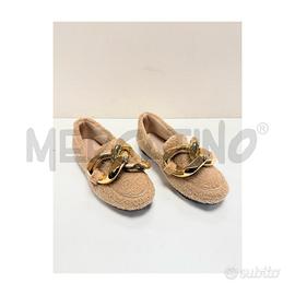 MOCASSINI TEDDY BEAR TG.38 BEIGE CON CATENA GOLD. EFFETTO PELUCHE PER COCCOLARE I PIEDI CON STILE! DETTAGLIO CHUNKY CHAIN DA VERA FASHIONISTA COMFORT MORBIDOSO GLAM = COMBO PERFETTA PER L INVERNO CHIC!