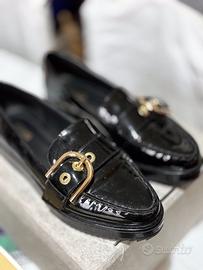 Eleganti mocassini MK in vernice con fibbia dorata e plateau rivestito. Comodi e versatili. Come nuovi, come da foto. Scatola originale