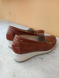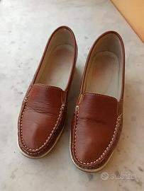 Vendo mocassini da donna, marca Cinzia Soft, scarpe comode, in pelle morbida di colore marrone, numero 36, altezza tacco 4 cm, usate e in buone condizioni. Qualche lieve segno dell'uso come visibile nelle immagini.