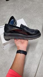 Vendo per inutilizzo mocassini donna vernice, marca Pollini originale, colore nero, numero 37 usate solo 2 volte.