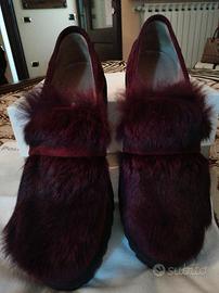 Mocassini donna pollini originali bordeaux con pelo nuovi con scatola e panno di protezione numero 37