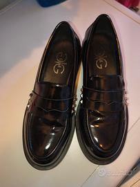 mocassini donna lucide nere con borchiette nuove usate solo due volte #mocassini