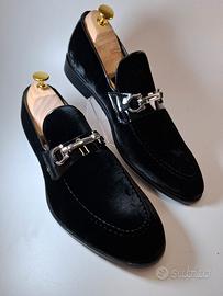 Vendo eleganti mocassini da uomo Colombo – Made in Italy, nuovi mai indossati. Realizzati in velluto nero con inserti lucidi e morsetto metallico, perfetti per cerimonie, eventi o outfit eleganti. ✔️ Taglia 42 ✔️ Colore nero ✔️ Suola in cuoio ✔️ Qualità artigianale italiana ✔️ Condizioni: pari al nuovo (mai usati) ❗ Tendiscarpe non inclusi Scarpe molto raffinate e comode, vestibilità regolare.