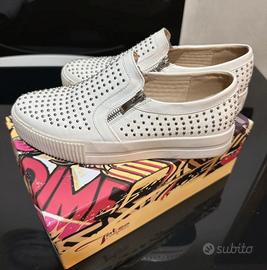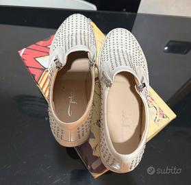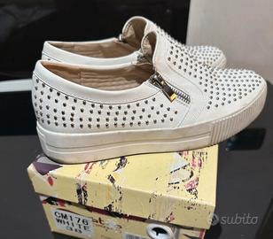 Mocassini estivi bianchi con borchie, come nuove indossate due volte, sono solamente da pulire, numero 38 con cerniere laterali.
