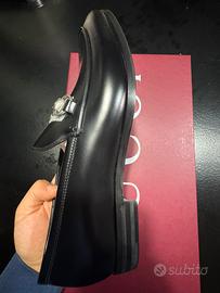 Mocassini Gucci di pelle nera nuovi confezionati completi di corredo, scatola, sacche da viaggio per singola scarpa, tagliandini. Le scarpe sono nuove da negozio