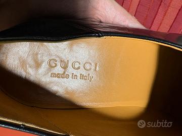 Vendo bellissimi e mai indossati mocassini originali di Gucci, modello iconico con Horsebit in metallo dorato, colore nero, tallone ripiegabile con possibilità di utilizzarli come sabot, suole cuoio con inserti antiscivolo. Periodo di Alessandro Michele. Numero 9 1/2, la calzata è stretta, è consigliato per chi ha un 43/43,5 di piede con larghezza pianta normale.
