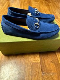 Mocassini Gucci in pelle scamosciata con morsetto, nuovi, taglia 9 1/2,