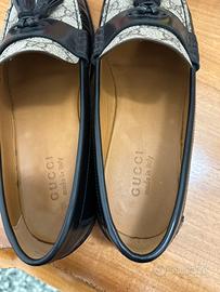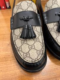 Vendo splendidi mocassini originali Gucci con nappine, caratterizzati dall'iconica tela GG Supreme e finiture in pelle nera. Un pezzo di classe assoluta, in condizioni eccellenti e tenuto con estrema cura. Dettagli e Condizioni: • Stato: Ottimo, pelle lucida e tela integra (i riflessi in foto sono dovuti alla luce, non sono graffi). • Suola: In cuoio originale, con segni minimi di utilizzo. • Autenticità: Prodotto 100% originale. All'interno è presente il codice identificativo Gucci. Sono disponibile a qualsiasi tipo di verifica post-acquisto presso boutique o esperti di fiducia: la qualità e i dettagli parlano da soli. Spedizione e Imballaggio: Non disponendo purtroppo della scatola originale (smarrita), le scarpe verranno spedite con un imballaggio professionale e ultra-sicuro per garantirne l'integrita totale durante il trasporto. Massima serietà. Disponibile per inviare foto macro del codice interno o della suola su richiesta. Spedizione rapida