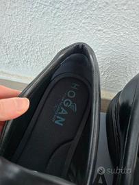 Vendo splendidi mocassini neri Hogan mocassino nero in pregiata pelle nera lucida. Una calzatura che unisce l'eleganza classica del mocassino al comfort tecnologico tipico del brand Hogan. Numero 10 che corrisponde 44.5 italiano eur Le scarpe sono in ottime condizioni generali, come visibile dalle foto. Segnalo la presenza di naturali e leggere pieghe d'utilizzo sul dorso . Suola con minimi segni di usura.
