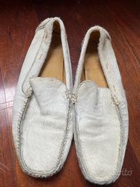 Mocassini da uomo in pelle di cavallino bianca, taglia 9. Il capo è stato utilizzato solo una volta e non presenta segni di usura o logoramento.