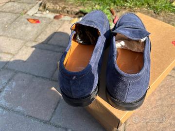 Vendo mocassini Bata originali in camoscio/suede blu, eleganti e versatili, ideali sia per uso quotidiano che per occasioni più formali. Marca: Bata Modello: Mocassino classico Colore: Blu Numero: 42 Condizione: nuove mai usate Suola: Gomma Con scatola originale (in foto) Scarpe acquistate ma praticamente mai indossate, come si vede dallo stato della suola e della tomaia. In negozio prezzo 89,99 €, vendo a 40 €. 👉 Consegna a mano preferita, possibile spedizione a carico dell’acquirente. 👉 Per qualsiasi informazione o foto aggiuntiva, contattami in chat