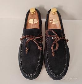 Mocassini Lumberjack Tomaia in pelle scamosciata, con fodera e soletta in pelle. Lacci a 360° in cuoio, cuciture a contrasto realizzate a mano e suola in gomma antiscivolo. Colore blu navy Misura 41 Spedizione immediata entro 12/24 ore Imballo ben curato.