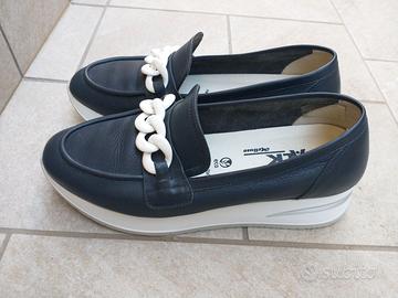 Vendo mocassini Melluso da donna, taglia 39, colore blu con suola bianca.