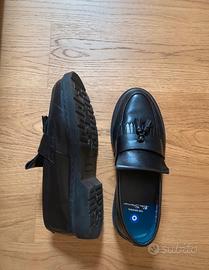 Mocassini neri Ben Sherman a pianta larga, usati due volte, in ottime condizioni. Numero 40, ma vanno bene anche per 41. Prezzo originale: € 125