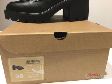 Mocassini neri con nappine marca Bata Suola in carrarmato con tacco 6 cm e plateau 2 cm