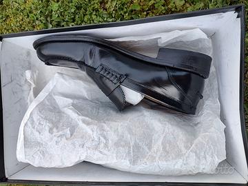Splendidi mocassini in pelle colore nero spazzolato, suola in cuoio. In ottimo stato. Taglia 41.