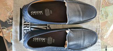 Mocassini casual in pelle blu. Fatti a mano, di Galizio Torresi. Con suola interna in memory ed esterna in gomma. Come nuovi e comodissimi.