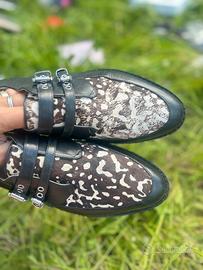 Mocassini da donna Michael Kors taglia 9 M 1/2 con pelle e animalier. Nyove come da foto suola ma una scarpa ha la parte davanti con il pelo rovinato