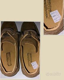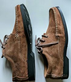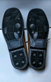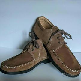 Mocassini uomo come da titolo. -Marchio: New Generazione -Numero: 41 -Colore: marrone chiaro -Made in Italy -Nuovi, senza scatola Presentano: -chiusura con lacci tono su tono -cucitura a vista lungo il bordo della parte superiore -fodera interna di colore chiaro -punta arrotondata per una vestibilità comoda. Sulla soletta destra è presente un'etichetta adesiva con i simboli informativi dei materiali: -pelle per tomaia e fodera interna -gomma per la suola. Sono scarpe versatili poichè si adattano sia ad un abbigliamento casual (es. jeans) sia ad uno più curato (es. pantaloni a sigaretta).