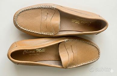 Vendesi elegantissimi mocassini classici (modello Penny Loafer) firmati Chiara Melli. Un pezzo di alta qualità artigianale Made in Italy, perfetto per un look casual-chic o per l'ufficio.
