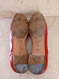 Scarpe rosso fuoco in pelle spazzata e nappine metalliche in ottimo stato. Inizi anno 2000