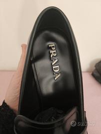Mocassini Prada nuovi, originali in pelle nera spazzolata, modello classico ed elegante.