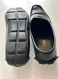 Vendo mocassini Prada originali in pelle nera con dettaglio effetto coccodrillo.