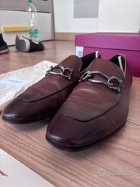 Mocassini Salvatore Ferragamo , pelle di vitello color testa di moro con gancini in metallo . Taglia 10 EEE (43-44 numero europeo) . Indossate 2 volte perché di taglia sbagliata . Le condizioni sono ottime , compreso di scatola e certificato di autenticità . Prezzo trattabile