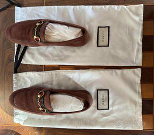 Vendo mocassini Gucci scamosciati, taglia 6 (normalmente calzo 41, considerate almeno 1 taglia in meno rispetto al solito; controllate nel sito di Gucci, sotto mocassini uomo Jordaan per conferma). Le scarpe sono state indossate in solo una occasione, condizioni perfette. Con scatola e sacche portascarpe originali. Specifico che sotto le suole vi sono ovviamente segni di utilizzo. - Modello: mocassino, uomo - Materiale: pelle scamosciata - Colore: marrone, con dettaglio verde e rosso - Taglia: 6 - Accessori: scatola e sacche Non esitate a contattarmi per informazioni extra, foto o proposta d'acquisto.