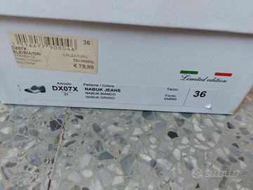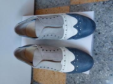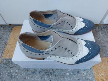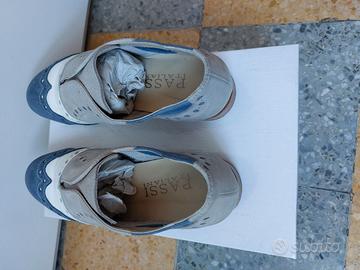 Mocassini modello slip-on grigio/bianco/blu jeans n.36; marca PASSI ITALIANI; BUONO STATO indossati poche volte; scatola originale.