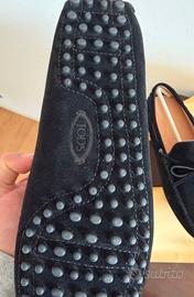 Eleganti mocassini uomo Tod's modello gommino in pelle scamosciata nera. Molto comode e versatili, perfette per uso quotidiano o outfit casual/elegante - calzata comoda e design classico intramontabile -taglia : 44 ( circa 10 US ) - colore : nero - materiale: camoscio ( pelle scamosciata ) - suola con gommini antiscivolo - condizioni ottime, mai usate ( come da foto ) - scatola inclusa. Condizioni di vendita con formula “ visto piaciuto “ numero unico per errato acquisto, non si accettano restituzioni.