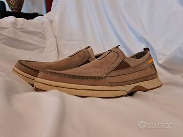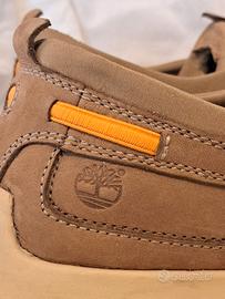 Eleganti mocassini Timberland. - Tomaia in pelle scamosciata. - Dettagli in tessuto. - Suola in gomma. - Taglia 11.5 US (Stati Uniti) ovvero 45 - 45.5 EU (Europa) per l'uomo, e a circa 29 cm di lunghezza del piede.