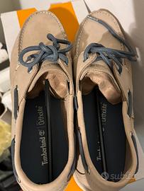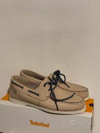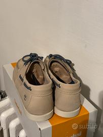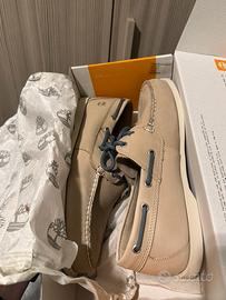 Scarpe Timberland. Scarpa da barca. Modello cedar bay lace up beige chiaro nubuck. Nuove mai indossate. Colore beige e lacci colorati. Numero 44. Realizzate per le giornate in acqua, le scarpe da barca Classic sono realizzate in pelle Premium Leather di Timberland® con gomma scanalata non-marking, pratico sistema di allacciatura a 360° con lacci in cuoio e intersuola in EVA per il massimo comfort. Tomaia in pelle Premium Leather di Timberland® Timberland sostiene una produzione della pelle più responsabile attraverso il Leather Working Group. Pratico sistema di allacciatura a 360° con lacci in cuoio. Intersuola in EVA. Suola in gomma scanalata. Colore beige e lacci colorati. Numero 44.