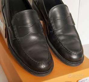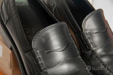 VENDESI 1 PAIO MOCASSINI TODS PELLE NERA ORIGINALI CON SCATOLA, ETICHETTE MODELLO SULLA SCATOLA E SUA BORSETTA IN TELA DA VIAGGIO.