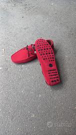 Nuovi e mai adoperati, scarpe uomo modello car shoe in Vera pelle camoscio colore rosso, fondo gomma light cucito alla tomaia prodotto italiano