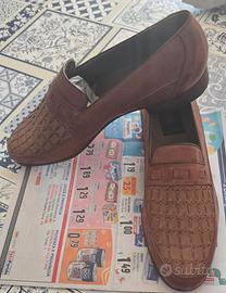 Eleganti mocassini da uomo in pelle marrone. - Tomaia con lavorazione intrecciata. - Dettagli a fasce. - Logo del brand sulla soletta interna.