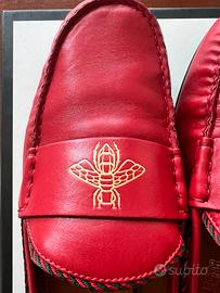 Mocassini in pelle con decorazioni a Ape, colore rosso, da uomo, taglia 10+ ovvero 44. Mai usati, nuovi, per taglia regalata sbagliata. Ritiro in zona Padova, Treviso, Vicenza oppure spedizione.