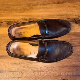 Vendo eleganti mocassini da uomo firmati Carmine Marfé, realizzati artigianalmente in Italia (Made in Italy). * Materiale: Vera pelle di alta qualità, molto morbida e confortevole. * Colore: Marrone testa di moro. * Dettagli: Morsetto metallico frontale color argento, suola in gomma a tasselli (stile driving shoes) per un ottimo grip. * Taglia: 43. * Condizioni: Le scarpe sono strutturalmente integre e la pelle esterna è ben conservata. Come visibile dalle foto, presentano evidenti segni di usura sulla soletta interna e nella zona del tallone (scurimenti dovuti all'utilizzo). La suola è in buone condizioni con ancora molto battistrada. Perfette per un look casual-chic o per l'ufficio. Vendo per inutilizzo.