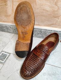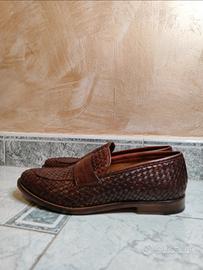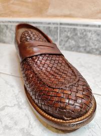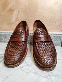 Eleganti mocassini modello penny loafer in pelle di vitello intrecciata, colore marrone. Lavorazione artigianale, suola in vero cuoio. Taglia: 43 Condizioni: ottime / usate pochissimo Molto comode e traspiranti, perfette per primavera/estate. Prezzo: €80 (trattabile)