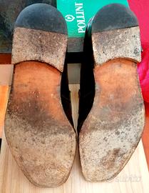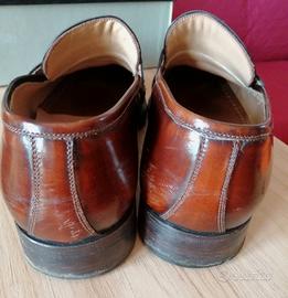 Mocassini uomo Pollini, classici, robusti e comodi, in pelle di vitello abrasivato, fodera in pelle, suola in cuoio, tacco 25mm con rinforzo in gomma, Made in Italy, completi di sacchetto e scatola originali.