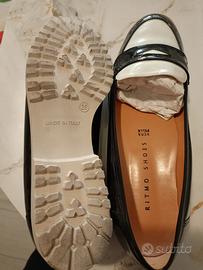 Mocassini vernice lucida color bianco e nero misura 39. Mai usati.
