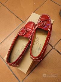 mocassino donna originale car shoe in vernice naplax colore rubino. Fondo con gommini. N. 36 indossati pochissime volte per numero sbagliato