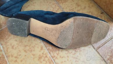 vendo mocassino colore blu con catena in argento e giro contenuta da giro in elastico ..interno morbido , comfort mis 35 ..ottima scarpa .Marca Cinzia Valle .