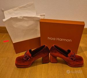 Mocassino in velluto rosso,tacco 6 cm indossato u a sola volta taglia 36 italiana