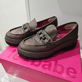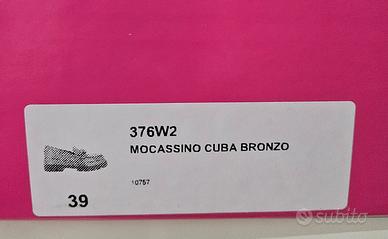 Mocassino usato di color bronzo alla moda che si abbina bene con tutti i look. Questa scarpa è creata con una fodera in cuoio. Dotata di un tacco di 4 cm.