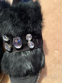 Elegante mocassino donna con pelo nero e strasse misura 39