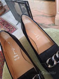 mocassino donna nero camoscio..tacco comodo..altezza 5.5 cm..come nuove..indossate una volta