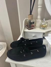 Nuovo mai indossato con scatola tg 38 Lunghezza 25 cm Mocassino donna effetto camoscio Nero con laccio Calzata regolare